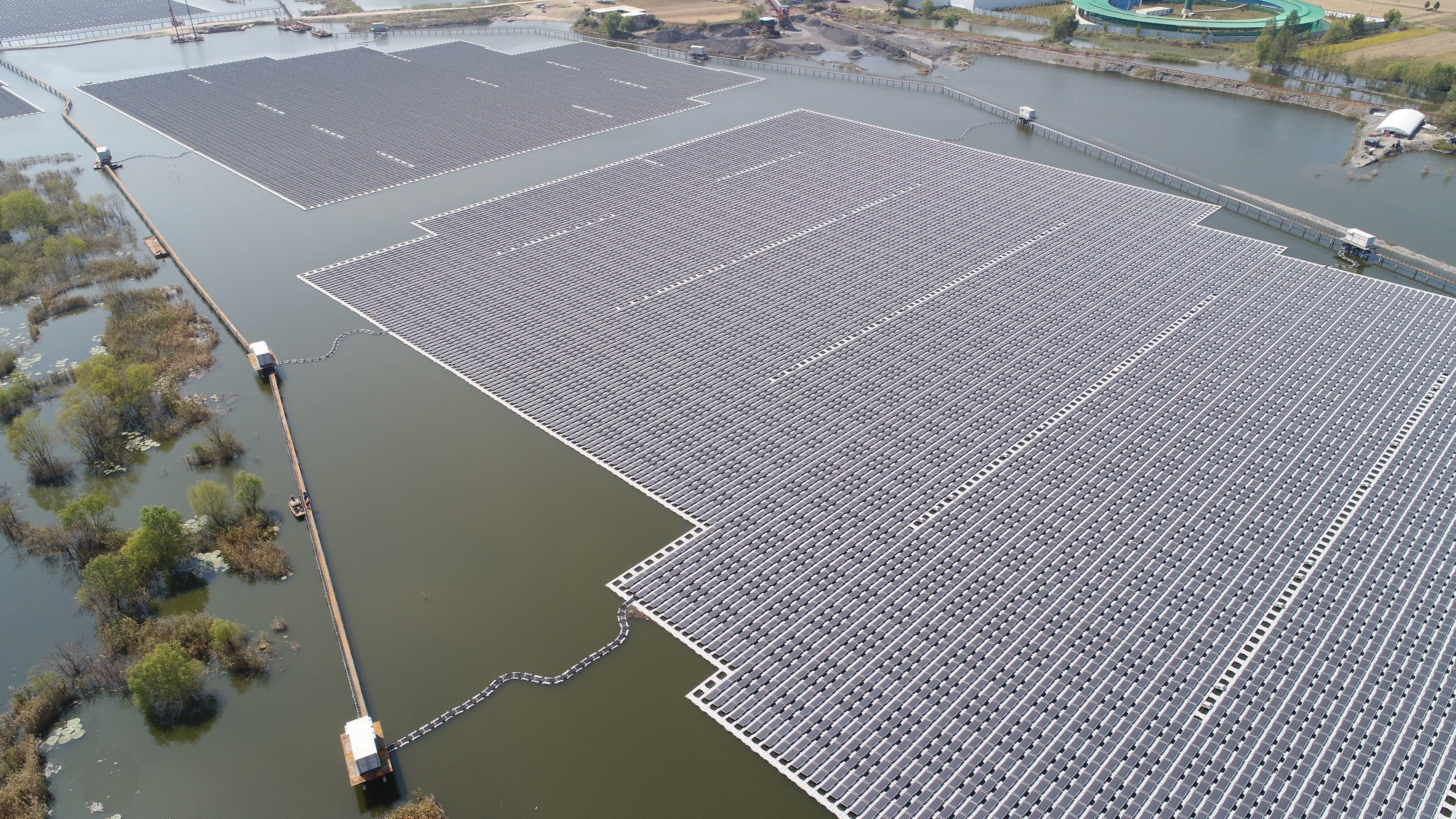 太陽能公司不斷推動創新發展,深入探索“光伏+農林、光伏+生態、光伏+治理”的電站經營模式,打造了多個示范樣板。中節能埇橋朱仙莊70兆瓦采煤沉陷區水面光伏發電項目,作為太陽能公司首座漂浮式光伏電站項目,每年平均上網電量約7700萬千瓦時,在25年建設運營周期內,項目可減少排放碳粉塵44萬噸,二氧化碳162萬噸,標煤65萬噸,二氧化硫4.9萬噸,氮氧化物2.4萬噸,生態效益顯著,也為我國采煤沉陷區水面綜合治理和開發利用探索出了一條新路。