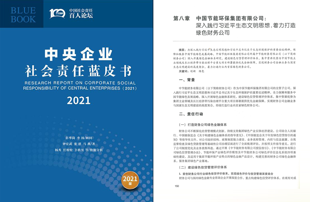 財務公司深入踐行習近平生態文明思想著力打造綠色財務公司案例,入選國資委《中央企業社會責任藍皮書(2021)》 |