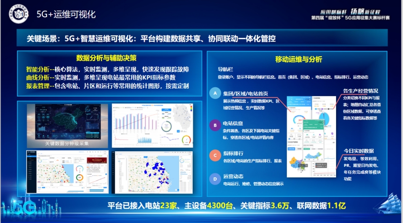 光伏智造智維協(xié)同創(chuàng)新云平臺是鎮(zhèn)江公司圍繞“數(shù)字化太陽能”的戰(zhàn)略目標,自主研發(fā)的光伏工廠智能制造與電站智能運維的協(xié)同創(chuàng)新應用。通過4大類(智慧園區(qū)、智能生產(chǎn)、智能運維以及統(tǒng)一標識)、20個場景的研究,重點解決3A(AI\AGV\AR)融合創(chuàng)新與數(shù)字賦能。截至2021年11月,云平臺應用榮獲兩化融合AAA評定、工業(yè)互聯(lián)網(wǎng)標桿工廠、五星上云、四星安全、第三屆綻放杯全國優(yōu)秀獎、SNEC吉瓦級金獎等24項榮譽、8項軟著;平臺已接入31個5G基站、150個5G終端,主設備4700臺;每年標識量5300萬;關(guān)鍵采集指標5.8萬、聯(lián)網(wǎng)數(shù)據(jù)2.3億;產(chǎn)能提升50.7%、運維效率提升80%;為大數(shù)據(jù)分析提供支撐并形成數(shù)據(jù)資產(chǎn),實現(xiàn)對內(nèi)/對外數(shù)字化應用服務與轉(zhuǎn)型輸出。