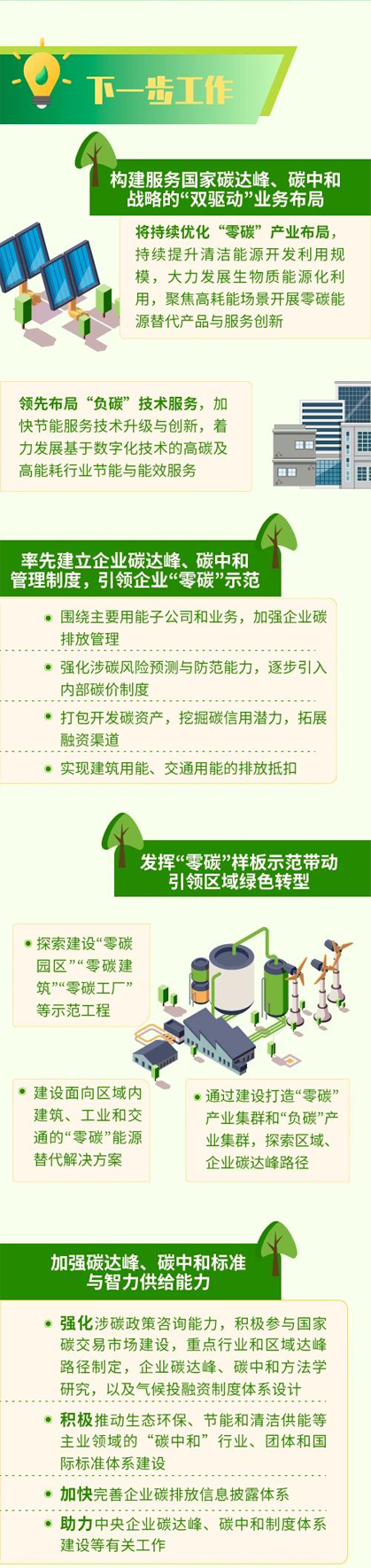 下一步,中國節能將不斷提升推動國家“碳中和”目標實現的咨詢規劃和資源統籌能力,探索構建服務國家“碳中和”愿景的“零碳產業+負碳技術”雙驅動布局,建立領先的“雙碳”制度體系,著力加強“雙碳”標準與智力供給能力。