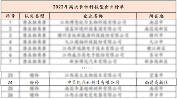 近日,江西省科技廳公布2022年高成長性科技型企業榜單,中節能江西公司下屬晶和科技成功入選瞪羚企業榜單。