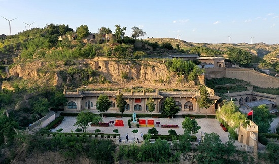 游人在陜西省榆林市米脂縣楊家溝革命舊址參觀(9月10日攝,無人機照片)。新華社記者 陶明 攝