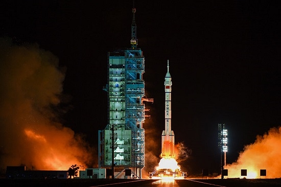 北京時間2021年10月16日0時23分,搭載神舟十三號載人飛船的長征二號F遙十三運載火箭,在酒泉衛星發射中心按照預定時間精準點火發射,順利將翟志剛、王亞平、葉光富3名航天員送入太空。新華社記者 劉磊 攝