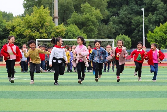 11月4日,在湖南省永州市新田縣雙碧小學,孩子們在運動場上做游戲。今年秋季學期開學以來,各地積極落實“雙減”政策,利用課后服務時間開展內容豐富、形式多樣的課外活動,促進學生全面發展。新華社發(劉貴雄 攝)