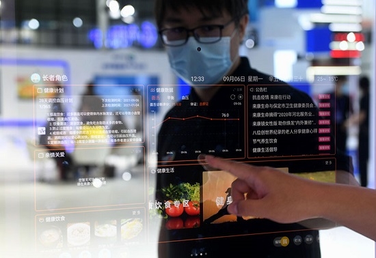 9月6日至8日,2021中國國際數字經濟博覽會在河北石家莊舉行。這是工作人員在博覽會上操作智能鏡子(9月6日攝)。新華社記者 王曉 攝