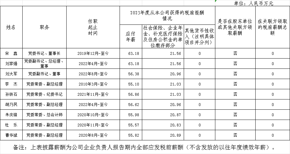中國節(jié)能環(huán)保集團有限公司公司企業(yè)負責人2023年度薪酬情況