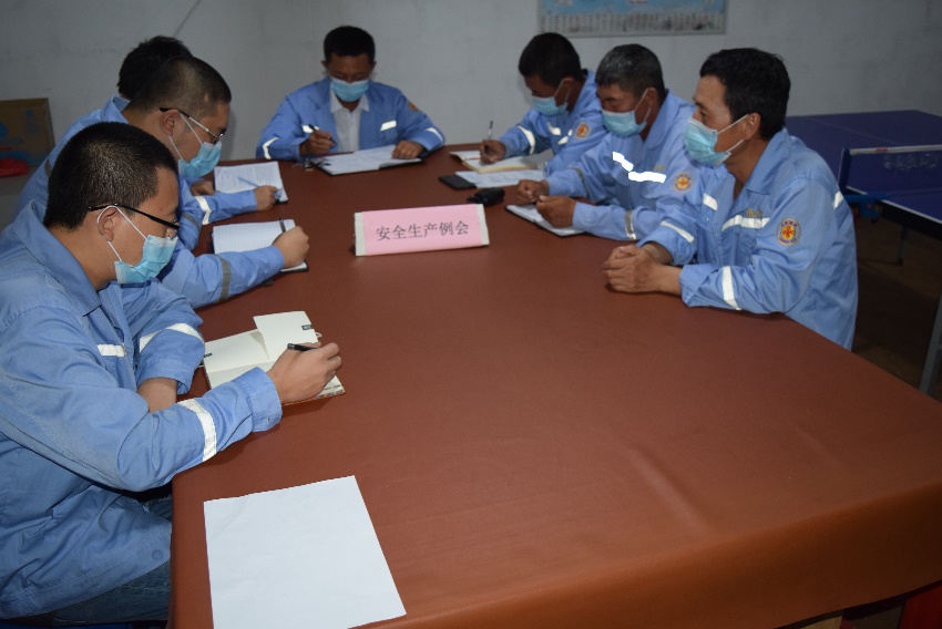 The construction project of the Kagera Vocational Training Centre in Tanzania, aided by China Qiyuan Engineering Corporation, has conducted disinfections and checked temperature of all employees twice a day, in order to block the spread of the virus. Moreover, hand sanitizers are available in public spaces, and employees are required to wear masks and eat separately, and each is accommodated in a separate room in dormitories. The picture shows the technical team of the project at a meeting on production safety and epidemic control.