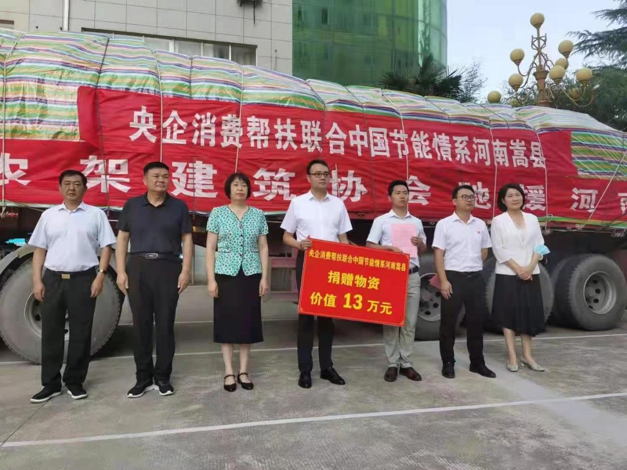 Thanks to coordination and collaboration with corporate consumption support platforms, CECEP donated 10,000 kilograms of cabbage, 5,000 kilograms of potatoes, 1,000 cases of mineral water and 300 cases of instant noodles, worth some 130,000 yuan in total, to Songxian, a county under paired assistance from the company, to help flood-affected locals meet their needs for daily necessities in the fight against the disaster.