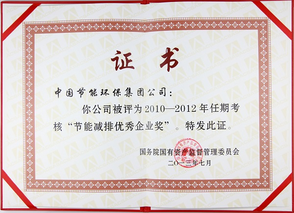 Outstanding Enterprise in Energy Efficiency and Emission Reduction (2010-2012)