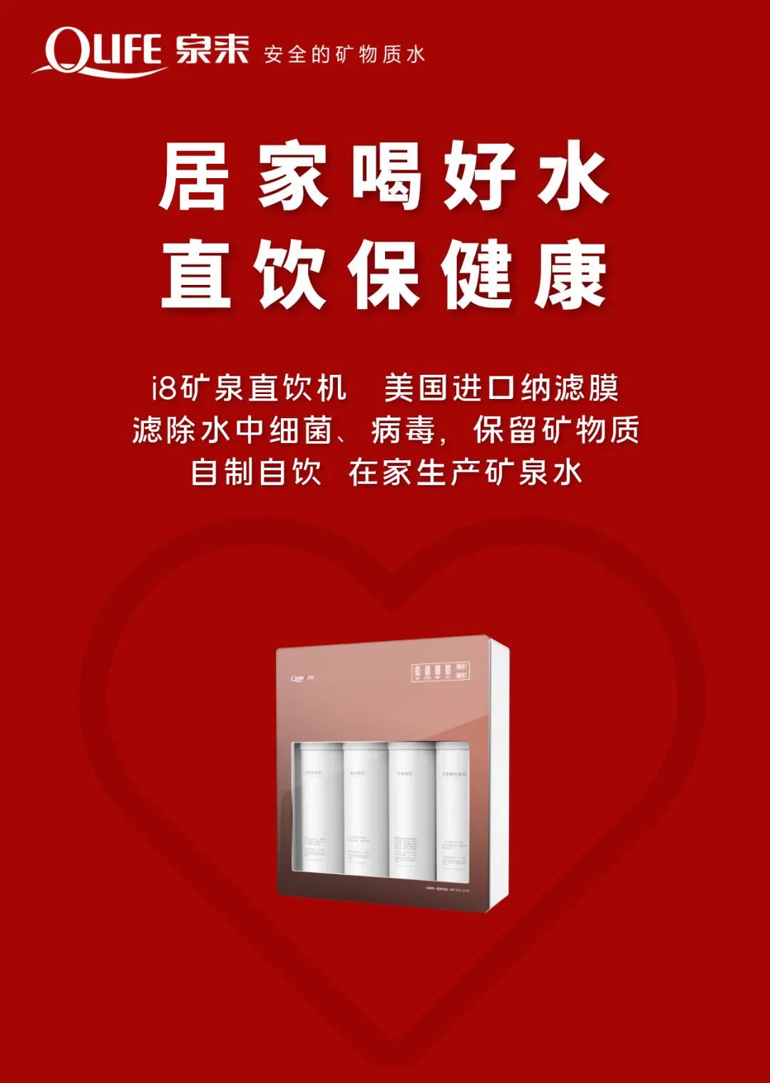 有很多家庭已經意識到水健康的重要性,特別是家中有孕婦、老人和幼兒等敏感人群,建議安裝一臺泉來礦泉直飲機或者全屋凈水套裝,給自己和家人多一分健康保障。